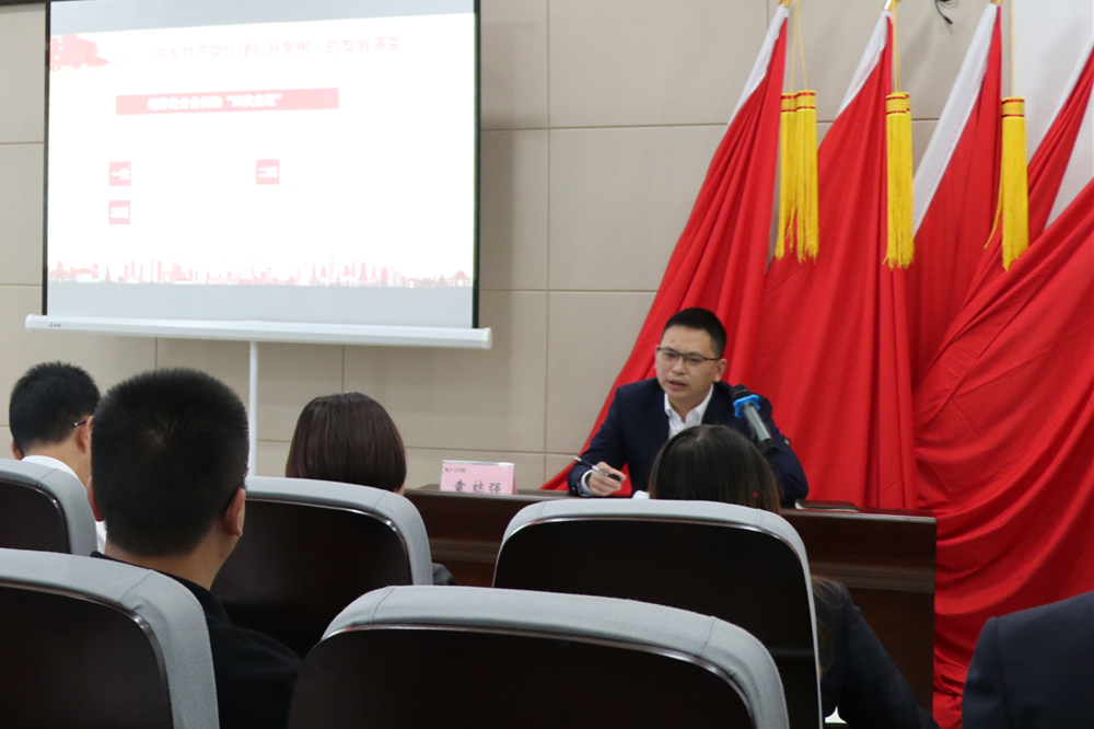 10月17日,瀘州城投集團(tuán)副總經(jīng)理袁梽強(qiáng)以“學(xué)黨規(guī)黨紀(jì),做合格黨員,以鐵的紀(jì)律推動(dòng)全面從嚴(yán)治黨向縱深發(fā)展”為題,為建科公司全體職工講黨課。