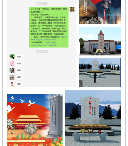 今年是中國共產(chǎn)黨成立100周年,無數(shù)英烈為了爭取民族獨立、人民自由幸福,為了國家繁榮富強,付出了鮮血和犧牲。4月2日,瀘州城投集團開展“守護·2021清明祭英烈”網(wǎng)上祭掃活動。